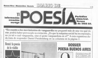 Año 3. Nº 11. Marzo de 1988 Tapa, p. 1 Sumario, p. 2 Mirta Rosenberg y Diana Bellessi, Reportaje, “Susana Thénon: Maquillando el caos”, foto por Susana Thénon, pp. 3-4 Susana Thénon, “Señores decentemente trajeados”, Poesía argentina, p. 4 Guillaume Apollinaire, “Las tetas de Tiresias”, traducción y notas de Jorge Fondebrider, dibujos de Picasso y … Sigue leyendo Diario de Poesía N° 11