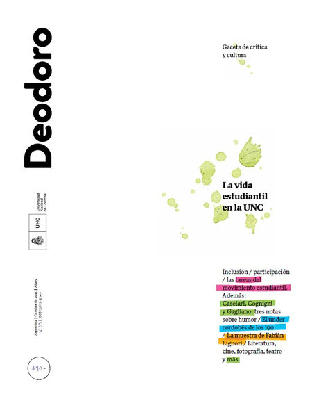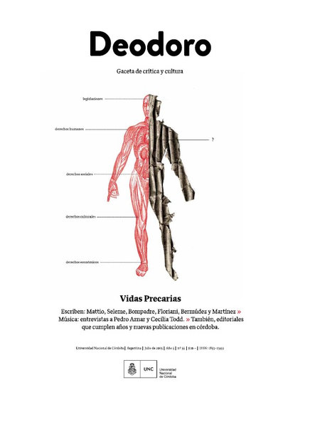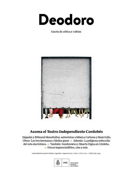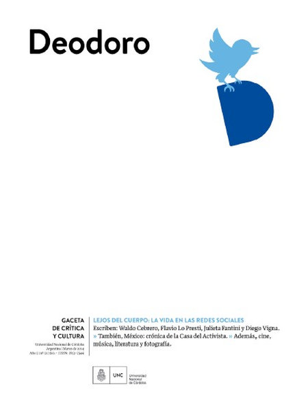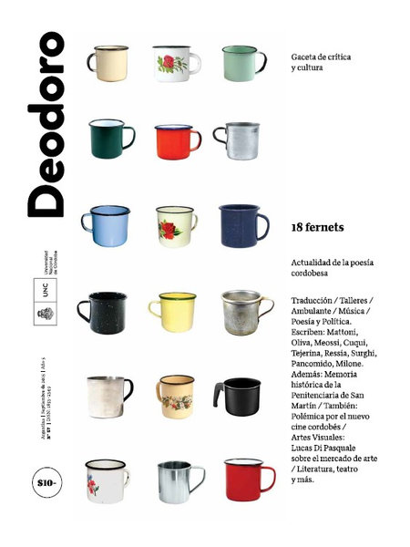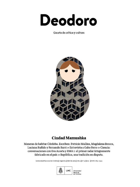 Deodoro se publicó en la ciudad de Córdoba, entre 2010 y 2016. No se propuso ser una revista académica, ni de actualidad. Tampoco nostálgica ni pasatista ni solemne. No quería tampoco ser una revista de información (aunque en sus páginas se hayan sentado posiciones e intervenciones en torno a temas de inmediato interés público). Sí era, o buscaba ser, una revista atenta, de lectura exigente, que no se demoraba en lo que ya se sabe o se espera leer, sino en lo desconocido o lo que estaba olvidado o lo que permanecía secreto. Quizá una revista de inactualidad. Lo que no significaba desentenderse de lo que sucedía en torno, en la ciudad de la que era un objeto cultural más.