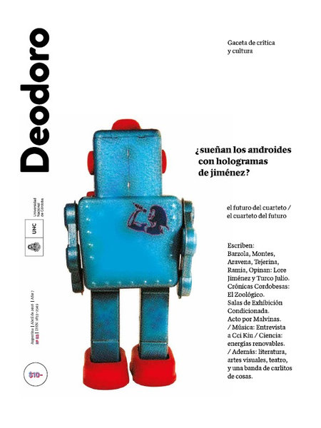 Deodoro se publicó en la ciudad de Córdoba, entre 2010 y 2016. No se propuso ser una revista académica, ni de actualidad. Tampoco nostálgica ni pasatista ni solemne. No quería tampoco ser una revista de información (aunque en sus páginas se hayan sentado posiciones e intervenciones en torno a temas de inmediato interés público). Sí era, o buscaba ser, una revista atenta, de lectura exigente, que no se demoraba en lo que ya se sabe o se espera leer, sino en lo desconocido o lo que estaba olvidado o lo que permanecía secreto. Quizá una revista de inactualidad. Lo que no significaba desentenderse de lo que sucedía en torno, en la ciudad de la que era un objeto cultural más.