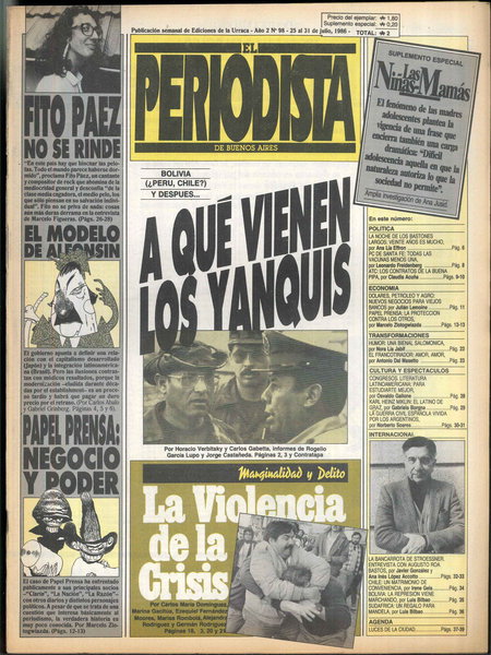 Fueron jefes de sección Carlos Abalo (Economía), Carlos Ares (informe especial), Mabel Itzcovich (Internacional), Francisco Juárez (Transformaciones), Rodolfo Rabanal (Cultura y espectáculos) y Luis Sicilia (Política nacional). Su primer equipo de redacción estuvo integrado por Alberto Catena, María Esther Gilio, Sergio Joselovsky, Daniel López, Vicente Lueiro, Horacio del Prado y Daniel Bosque. A lo largo de los años, contó con importantes columnistas como Alvaro Abos, Osvaldo Bayer, Mario Benedetti, Nora Catelli, Roberto Cossa, Antonio Dal Masetto, Eduardo Galeano, Rogelio García Lupo, Roberto Jacoby, Tomás Eloy Martínez, Federico Mittelbach, Ricardo Piglia, León Rozitchner, Beatriz Sarlo, Gregorio Selser, Rodolfo Terragno, David Viñas, Adriana Bruno, Stella Calloni, Susana Colombo, Martín Granovsky, Luis Majul, Eduardo Pogoriles, Horacio Verbitsky, Marcelo Zlotogwiazda, Alfredo Zaiat, Alfredo Leuco, Dolores Valle, María Seoane, Marcelo Figueras, Luciano Monteagudo, Ezequiel Fernández Moores, Lila Pastoriza, entre otros. El humor político tuvo una importante presencia, con la participación de Langer, Daniel Paz, Rudy, Palomo, Meijide, Tabaré, Peni-Palomares, Mordillo y Lawry.