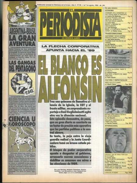 En sus 240 números, El Periodista abordó los temas candentes del primer gobierno democrático, con un fuerte compromiso con los derechos humanos y la recién recuperada democracia: la cuestión militar, los juicios a las Juntas, las sublevaciones carapintadas, los conflictos sindicales, las elecciones legislativas de medio término, la renovación del peronismo, los problemas estructurales de la economía, el ascenso de Carlos Menem como figura de recambio del peronismo en 1988 y el ataque al cuartel de la Tablada. Dedicó secciones y paginas a las nuevas tendencias en ciencia, técnica, consumo y estilo de vida, así como al teatro, el cine, la plástica, los libros, la música, la televisión, la radio, los deportes y las cuestiones educativas, tan decisivas durante el gobierno alfonsinista.